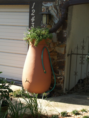 Its shape looks beautiful. Since I purchased this rain barrel, it has worked good. I can use either a spigot or a hose to get the water from this barrel. I always use the hose more often because it easy to fill water in my watering can. It would’ve been good if the hose were longer, but it is minor thing. I really love this rain barrel !